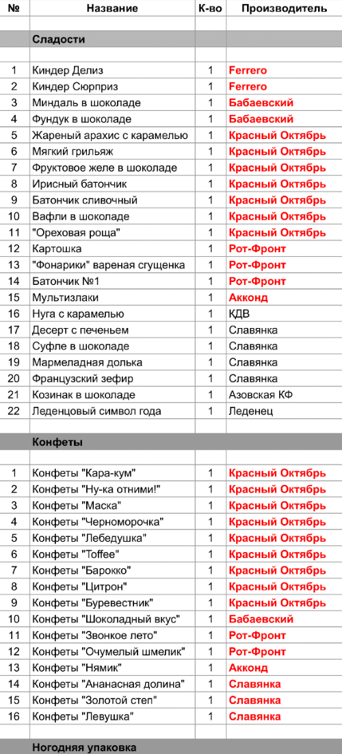 1. Проверить, можно ли внести изменения в состав подарка. Если нет, то скорее всего наборы были собраны еще летом из конфет, произведенных еще раньше