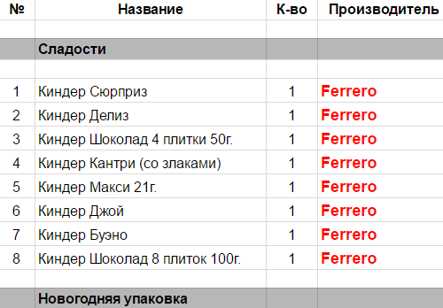 Опубликовано в Составы подарков